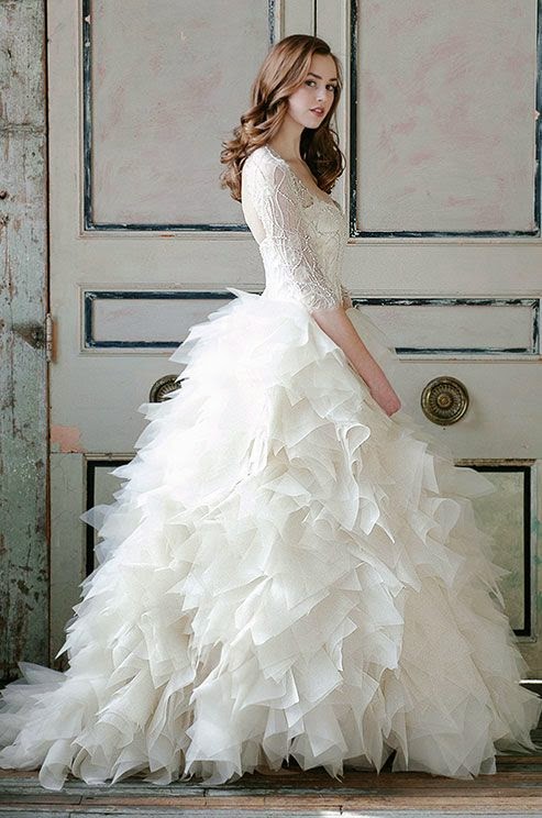 Layers of tulle and silk organza create a dramatic look with a keyhole back. Too much?