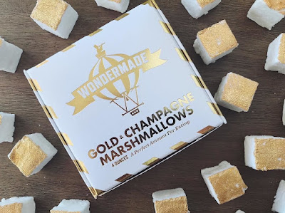 As seen in the New York Times. Decadent and delicious! These are the cutest things ever, and a wonderful party favor. They have been infused with champagne and sprinkled with edible 14 karat gold. They are petite and you will find 16 small pieces in each container.